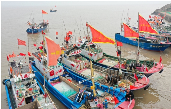 11月2日,城南镇东峰山码头,流刺网作业渔船准备出海捕捞鲚鱼。