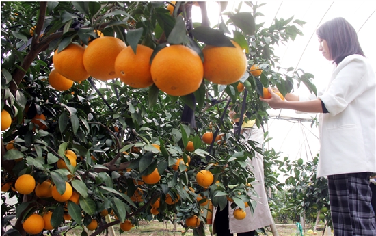 11月2日,城南镇黄湾村的爱媛农场内,游客正在采摘刚成熟的红美人柑橘。这几天,爱媛农场内的14亩头茬红美人柑橘纷纷成熟,肉质柔软多汁的红美人柑橘挂满枝头,吸引了不少游客前往采摘尝鲜。