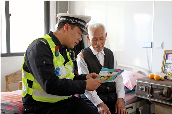 11月14日上午,箬横镇交警中队的民警走进该镇东浦敬老院,向入住在此的独居老人开展交通规则知识宣传。民警介绍,作为人口大镇,箬横镇现有60周岁及以上老年群体达32318人,在全镇各类交通事故受害者中占比较高。对此,该镇交警中队通过知识送上门、对面话交规的方式,让老人群体及时收到“交通安全大礼包”,确保出行安全。