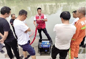 在森林防灭火培训中,工作人员介绍水泵使用方法。