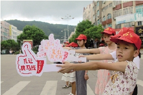 小小志愿者参与“礼让斑马线”活动。