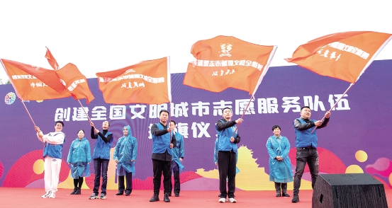 创建全国文明城市志愿服务队伍授旗仪式。