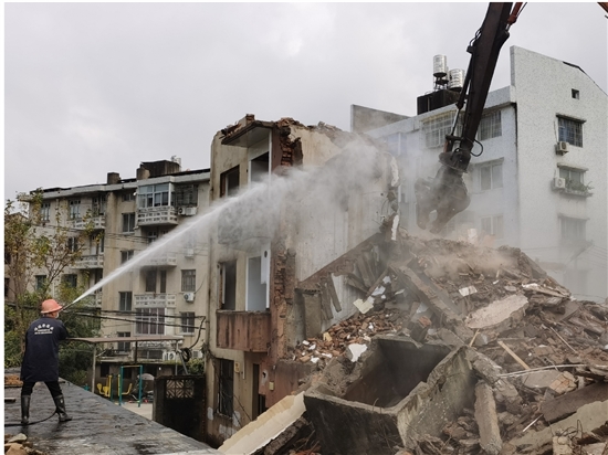 11月29日,太平街道对G228建设征用房屋进行拆除。整个拆除过程使用高压水枪除尘,机械作业到哪里,高压水枪就射到哪里,最大程度减少拆屋过程中产生的尘土对周边居民带来的影响。