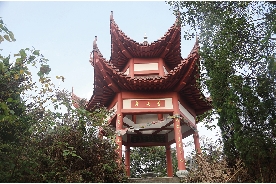 山北麓有水井一口,山不高,步行两三分钟就到了山上,观音寺东边空地上,立有一座通讯高塔,树影间,更东边高一点处则有座凉亭,走近看,原来是“星山亭”。
