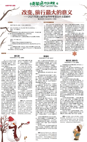 点评:这是一篇颇有意趣的论理文章。作者运用多种论证方法,从“旅行能拓宽视野,开阔胸襟”,“旅行能陶冶情操,提升境界”,“旅行是一种人生态度”三个层面阐释旅行的意义。结尾点题,收束有力:做个旅行者,时时在路上,获得生命的有益成长。文章有思维深度,也有文采斐然。