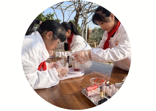当天,学生还仿照八宝茶的制作方法,品茗花茶。据悉,每周,“石桥小镇”都会开展两次课程,学生们将轮流体验小镇的各个项目。同时,学校深入探索科技创新人才培养路径,每年都会对课程进行迭代更新。这次成果展上,学校推出了魅力口红、滴胶干花、蔬菜拓印等10门新课程。“希望通过本次活动,学生们能用自己的智慧、灵巧的双手去实践、去创造、去探索、去发明、去体验科技的魅力。”范卡说。