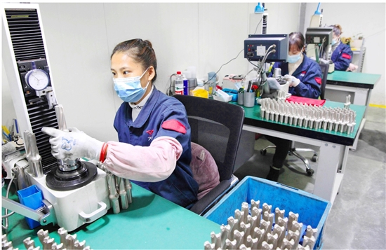 12月17日,浙江甬岭数控刀具有限公司,员工正有条不紊地检测出厂精镗刀具。