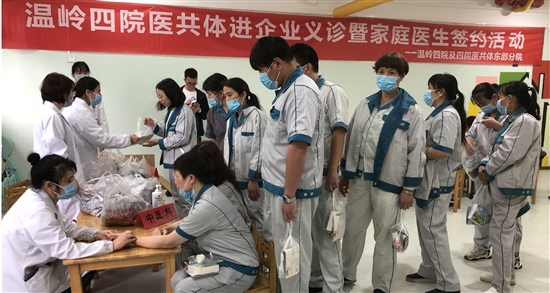 5月20日,市四院医共体及东部分院进入利欧集团,开展义诊和家庭医生签约活动。(照片由市卫健局提供)