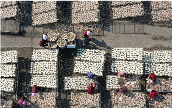 新年伊始,加工户们紧抓晴好天气,忙着晾晒鱼鲞,准备供应春节市场。