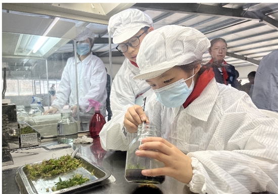 活动当天,学生们还品尝了铁皮石斛茶、铁皮石斛猪肉饭等。校共同体锦园小学的学生们也一起前往基地,对铁皮石斛的生长习性和种植技术有了初步的认识和了解。锦园小学的学生陈希诺感觉不虚此行!“家里也有一些铁皮石斛,但都是晒干的模样,这次,我看到了鲜铁皮石斛,还品尝到鲜铁皮石斛的味道,感受到了科技的力量。”