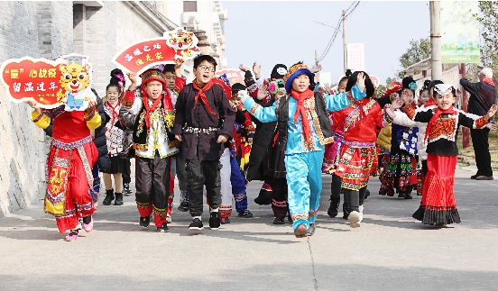 学生们穿着艳丽的民族服装,举着“温暖之处便是家”“‘童’心战疫 留温过年”等牌子,上街宣传,倡议外来务工家庭留在温岭就地过年。