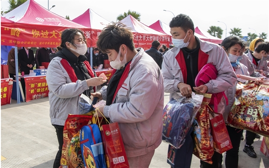 当天中午11时许,位于温岭经济开发区的浙江爱仕达电器股份有限公司内,员工宿舍区热闹有序。爱仕达新厂区就地过年的新温岭人有200余人。为了让就地过年的新温岭人暖心过节,年货大篷车为他们送去了爱心年货。除了温岭特色美食油爽、炒米糖等,还有童阅包、消防安全大礼包等礼品。
