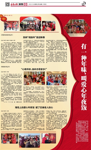 “饺子开锅喽。”“祝大家虎年大吉。”大家一起围桌而坐,品尝起自己的劳动成果,举杯共祝新年快乐。