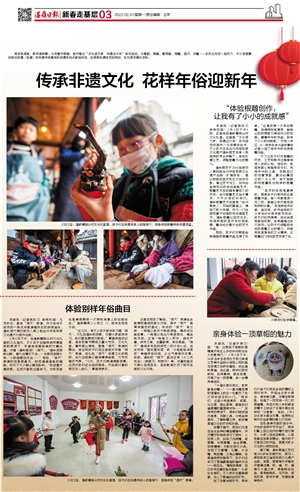 本报讯(记者叶琳文/图)“哇!没想到不起眼的草帽竟然有这么多的学问和如此大的影响力!”2月3日下午,30多名学生走进位于浙江舜浦工艺美术品股份有限公司的高龙非遗文创研学基地,体验温岭草编。在这里,同学们探究新知、找寻真相、感受非遗,开展了绘一顶草帽、走一台帽秀等活动。