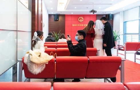 据统计,2月22日,市行政服务中心婚姻登记窗口共为191对新人办理了结婚登记。