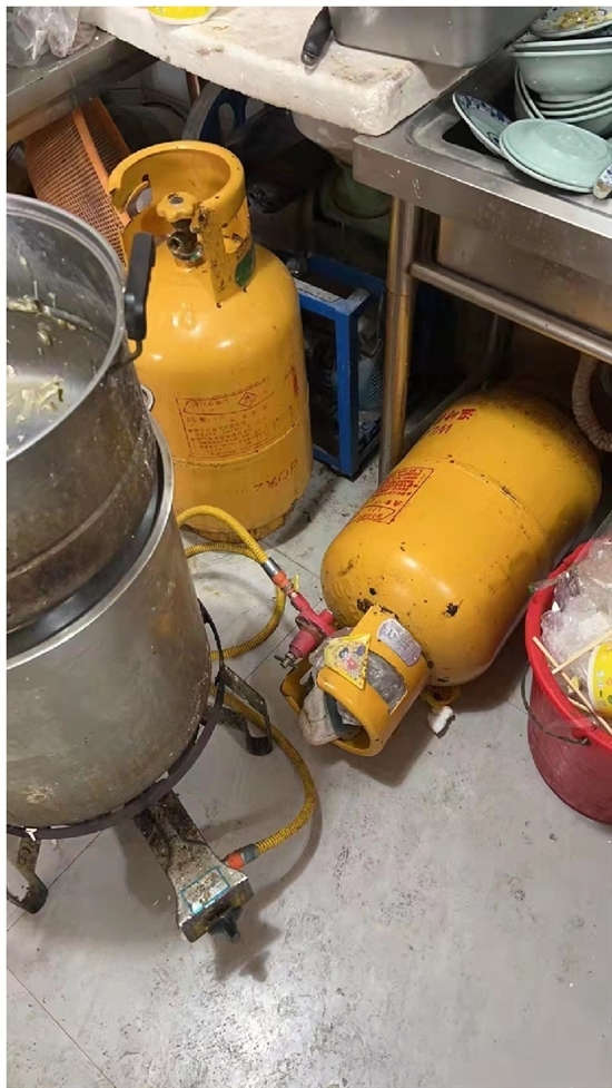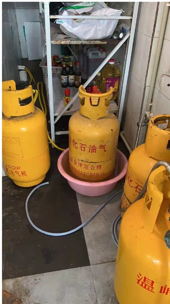 当天,街道执法人员先后前往祝家洋、上洋林等村开展燃气安全专项检查。检查中,执法人员发现有3家餐饮店将燃气钢瓶放在装有热水的脸盆内加热使用,还有一家餐饮店将燃气瓶倒卧使用,均存在较大隐患。对此,执法人员对相关店主进行了燃气安全知识普及教育,并责令其立即进行整改。