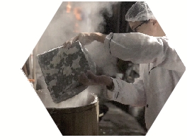 凌晨3点,我带着睡意迈出家门。寒意扑面而来,顺着衣领直往里钻。瞬时,一个冷战,我立马清醒了。伴着灯光,我们开始工作:叉粉、蒸粉成糕、舂打年糕、炒馅料、售卖、整理。