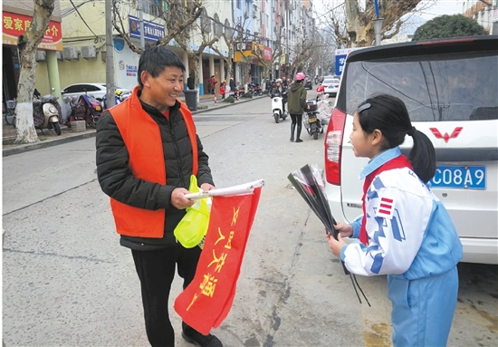 本报讯(记者郑灵芝文/图)“阿姨好,感谢你一大早在校门口维持交通秩序,扶着我们下车,又给我们拿书包。这朵鲜花送给你,为你点赞!”3月1日,方城小学开展“学习雷锋精神 培育时代新人”活动,各个班级的学生代表来到校门口,为早上执勤的12位家长志愿者和1位执勤交警送上鲜花和爱心表白卡。