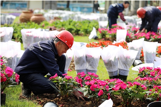 3月3日,市区锦屏公园新栽种了1000多盆凤仙花、鲁冰花等花草,营造出一片姹紫嫣红的春天景象,成为踏青赏花的好去处。 记者 周学军摄