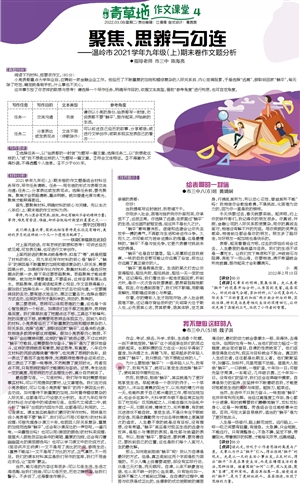 2021学年九年级(上)期末卷的作文题是结合材料任务写作,写作任务清晰。任务一:用书信的形式与表哥交流沟通;任务二:分享表达或发表观点。选择任务前,要先聚焦。聚焦才会思路清晰,重点明晰。就如普通光源与激光,聚焦才能照得更远。