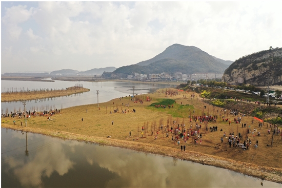 今年是杭州亚运之年,绿色是亚运会重要办赛理念。连日来,我市通过造林绿化、抚育管护、自然保护、认种认养、设施修建、捐资捐物、自愿服务等方式,广泛开展义务植树活动。当天上午,在东部新区礁山湖生态湿地公园,市自然资源和规划局组织部分中小学生、文明志愿者、社会团体、普通市民等1000多人开展义务植树。现场人员挥锹铲土、深挖细填,干劲十足。经过共同努力,新栽下落羽杉和香樟树共计800余株,预计可增加年碳汇量约22800公斤。