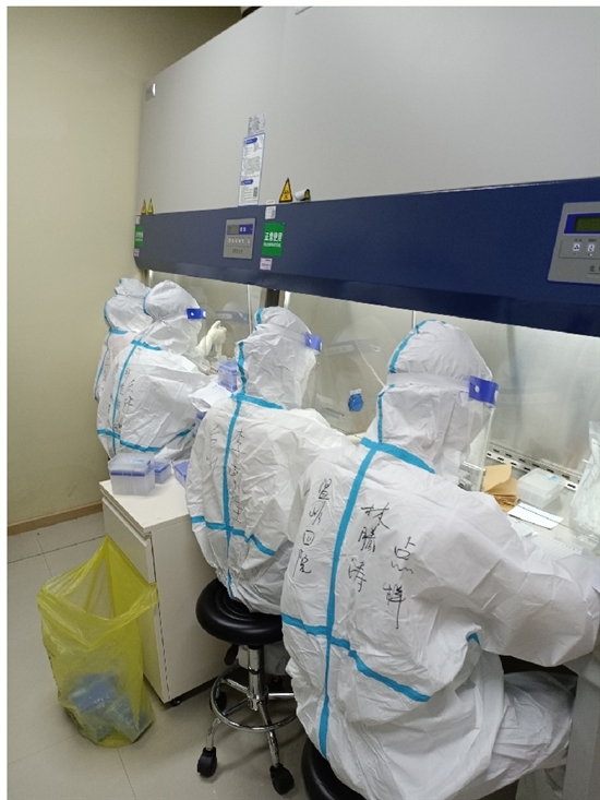 “每天的核酸检测标本量非常大,我们需要在实验室持续工作五六个小时。一天下来,我们都很疲惫,但小伙伴们都毫无怨言。因为我们肩上有责任在,我们都在跟时间赛跑。”郑佳颖说。