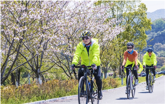 4月3日, 松门自行车俱乐部的骑行爱好者们从松门出发沿公路骑行, 直达温岭植物园, 往返行程50公里,期间既锻炼了身体,陶冶了情操,又领略了自然风光。