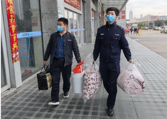 隔天早上,民警伍凌曦将程某护送到大溪客车站。“本来是所长来送的,因为头一晚他防疫执勤通宵,所以让我替他来送。”在车站门口扫健康码,由于程某手机欠费了打不开,伍凌曦又给他充了100元话费,随后又给了他50元钱在路上买吃的。