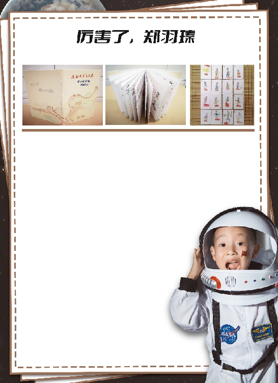 完成这本书的编排,不得不归功于郑羽瑧的博览群书、文辞积累。副班主任梁玉萍更是笑称他是个小书迷。“比起同龄的学生,他的知识面更广。几乎每个课间,都能看到他捧着书阅读,或者跟我分享阅读体验。”梁玉萍提到,有一次,郑羽瑧当小老师管理班级,但是自己在台上看得入迷,完全忘记了班级的同学,令她哭笑不得。