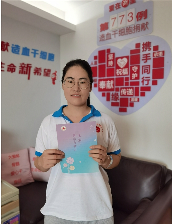 随同生命火种一道传递的,还有虞文君深深的祝福与鼓励。她还为小患者写下这样的话语:“也许以后你会遇到很多挫折,希望你能笑对生活,做个眼里有光、心中有爱的人。”
