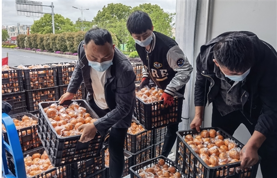 温岭安徽商会捐赠300箱水果和100箱自热饭