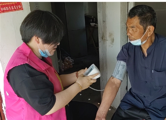 4月12日,滨海镇妇联组织巾帼志愿者,带着血压辅助器、慰问品进村入户,为老人们送温暖。
