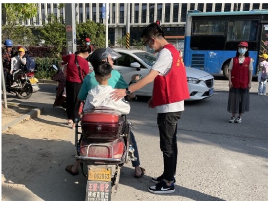 温峤二小志愿者开展“文明交通劝导”志愿服务活动,志愿者走上街头,向路人宣传文明行为,为创建文明城市出一份力。 通讯员 赵素文摄