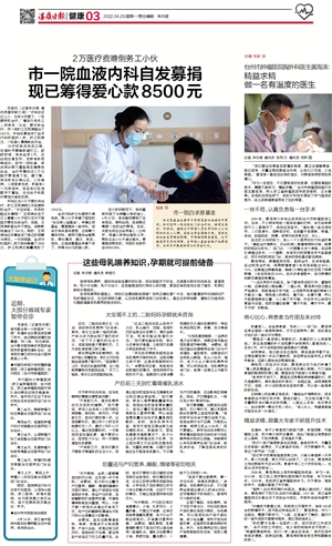 市一院血液内科自发募捐 现已筹得爱心款8500元