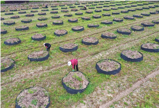 4月22日,果农在箬横镇浦岙村果园里清理杂草。
