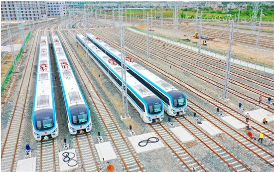 5月15日,台州市域铁路S1线温岭城南车辆段,四列崭新的动车组静静地卧在铁轨上,整装待发迎接6月底试运行。