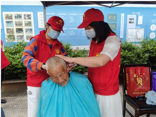 授旗仪式结束后,台胞义工们现场开展了志愿服务。义工们分成三组:一组在村部设点为老人提供量血压、理发等服务;一组来到田里帮村民挖小土豆;还有一组台胞义工和台联界政协委员一起留在村部会议室开展“调研迴龙村,实现共富裕”研讨座谈。