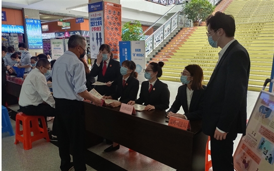 5月20日,市司法局、温峤司法所会同市人民法院、市法律援助中心、咨道法律事务所,到浙江工量刃具交易中心进行普法宣传,为市场经营户及中小企业主“送法上门”,现场解答法律问题并提供涉法涉诉问题“一条龙”释疑解惑。