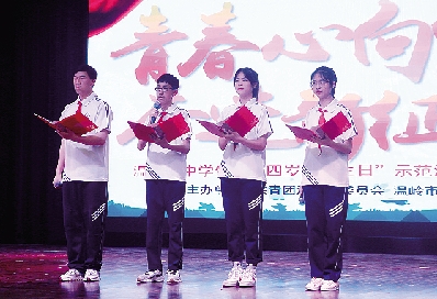 本报讯(记者江潇扬)一场离队仪式,告别童年的纯真;一场入团仪式,开启青春的征程。6月1日,由共青团温岭市委员会、温岭市教育局联合举办的“青春心向党、奋进新征程”温岭市中学生“十四岁集体生日”示范活动在市三中举行。