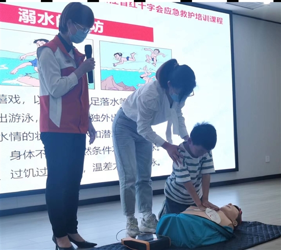 暑期,是学生溺水高发时段。为此,该院急诊科护士长梁玲娟引导孩子们加深对防溺水知识的了解,掌握防溺水的一些措施和方法,提高自我防范意识和自救及互救的能力。梁玲娟还利用便携式除颤仪给孩子们进行实操急救演示,并让孩子们和家长上台进行交互体验。