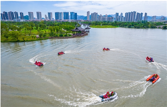 6月22日,市消防救援大队联合蓝天、红豹救援队,在九龙汇公园开展水域救援联合演练。70多名救援队员协同合作,围绕水域救援、舟艇编队等项目进行拉练,以此提高救援队伍防汛应急处置和水上抢险救灾能力,增强队伍联动配合的实战经验,确保汛期安全。