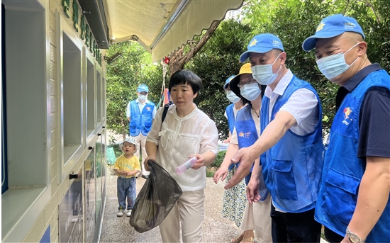 6月24日上午,由市委组织部、太平街道办事处、繁昌社区组成的垃圾分类督导员小组来到市区京汉君庭小区,在垃圾房旁开展桶边督导、发放宣传资料,推动小区将垃圾分类工作落到实处。 记者 赵云摄