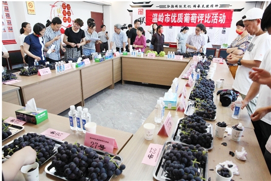 为鼓励果农种植葡萄从产量向质量效益转型,市农合联和市供销社联合举行优质葡萄评比暨产销对接活动。果树专家根据葡萄果穗大小、果粒均匀度、色泽等外观指标和肉质、风味、可溶性固形物等内质进行综合打分,从30多份送评葡萄中评选出6个金奖。