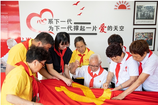 近日,俞明德工作室的成员们绣制了一面长2.88米、宽1.92米的党旗,用朴实的方式,迎接党的二十大胜利召开。