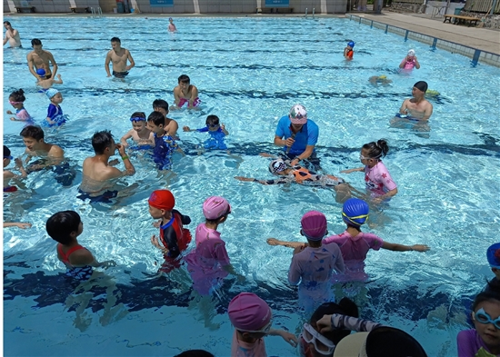 本报讯(记者王萍文/图)“学会了游泳的人,意外落水时,就一定能救自己吗?”7月5日上午,在市体育中心游泳池旁,市游泳协会防溺水宣讲团的老师们通过一次次亲身体验,让参与活动的孩子们找到了答案。