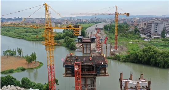 泽国一号高架桥第二联地处九殿庙,横跨百步河,为分幅变截面连续箱梁,采用分节段施工。中国水利水电第四工程局有限公司技术员彭伟波告诉记者,大跨径整体连续梁桥一般采用分节段施工,每一节段称为“块”。位于桥墩正上方向两边延伸的第一块叫“零号块”,是桥梁最先浇筑的单元,是连续梁施工的第一步,也是连续箱梁施工的关键性节点。零号块混凝土凝固后,再以零号块为基础和支点,逐渐向两端延伸,将各个桥墩连接形成桥面。