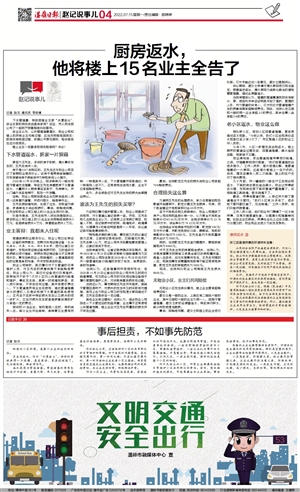 工作人员介绍,他们物业专门聘请了一位水电师傅,日常开展管道检查,处理漏水和堵塞等问题。收到业主反映后,师傅也会马上过去处理。因为处理及时,物业和业主很少为此发生争执。