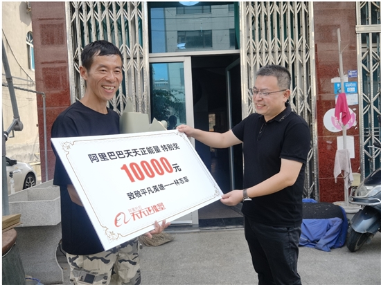 本报讯(记者郑灵芝 通讯员王华琦文/图)连日来,一则温岭光膀大叔跳河救人事迹引发社会关注(详见本报7月8日第三版)。这位大叔奋不顾身救人的大爱、危难之际展现的沉着冷静以及教科书式的现场急救,赢得广大网友一片赞誉:“平凡的人们给我最多感动,为温岭好人点赞!”日前,阿里巴巴天天正能量联合钱江晚报·小时新闻、市融媒体中心为“热心大叔”林志军颁发1万元的正能量特别奖,点赞热忱勇敢的他。