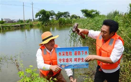 千口深水塘 插上警示牌