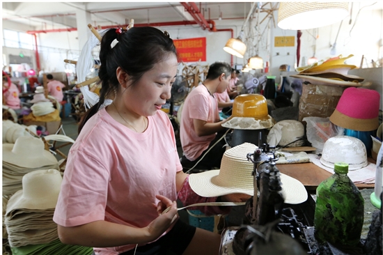 近日,新河镇总工会举行帽业职工编织帽技能大比武,50多名选手参加角逐。最后,一名工人以半小时编织19顶帽子的成绩夺冠。